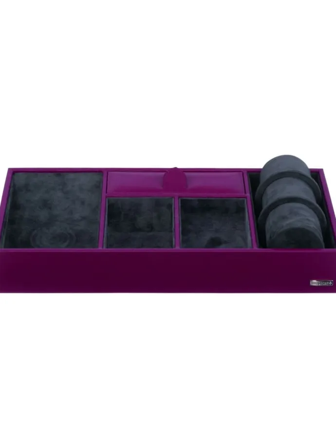 Edler Schmuckkasten von Windrose der Pure Serie in schönem Feinsynthetik. Das Kästchen ist in fünf Fächer unterteilt, wovon eines mit einer kontaktlosen Handyladestation ausgestattet ist. Des weiteren ist ein kleines herausnehmbares Fach sowie ein Uhrenkissen mitinbegriffen.