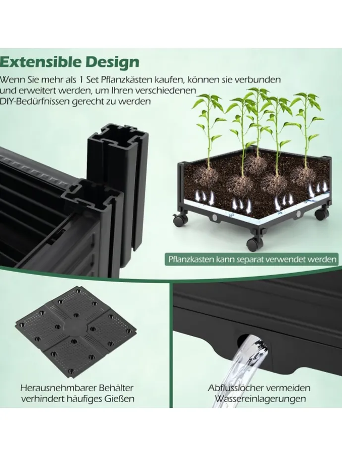 Unser Hochbeet mit Gitter ist eine perfekte Lösung für Kletterpflanzen zum Wachsen! Hergestellt aus PP-Material und PE-beschichteten Metallrohren, gewährleistet das erhöhte Anbaukastenset Pflanzensicherheit und bietet gleichzeitig Haltbarkeit und Wetterbeständigkeit. Außerdem bietet der Garten-Obelisk-Gitter den notwendigen vertikalen Raum für das Gedeihen von Kletterpflanzen.