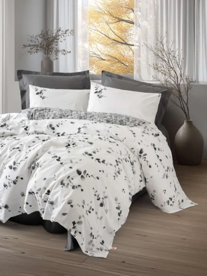 Renforcé-Bettwäsche-Set „Elaria“ in Weiß/ Anthrazit