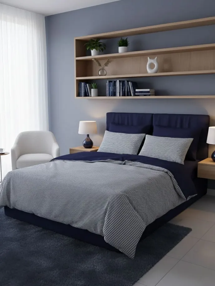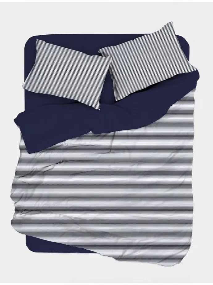 Renforcé-Bettwäsche-Set in Dunkelblau/ Weiß