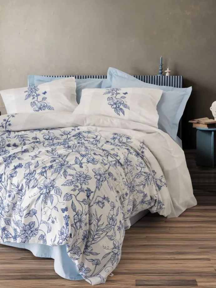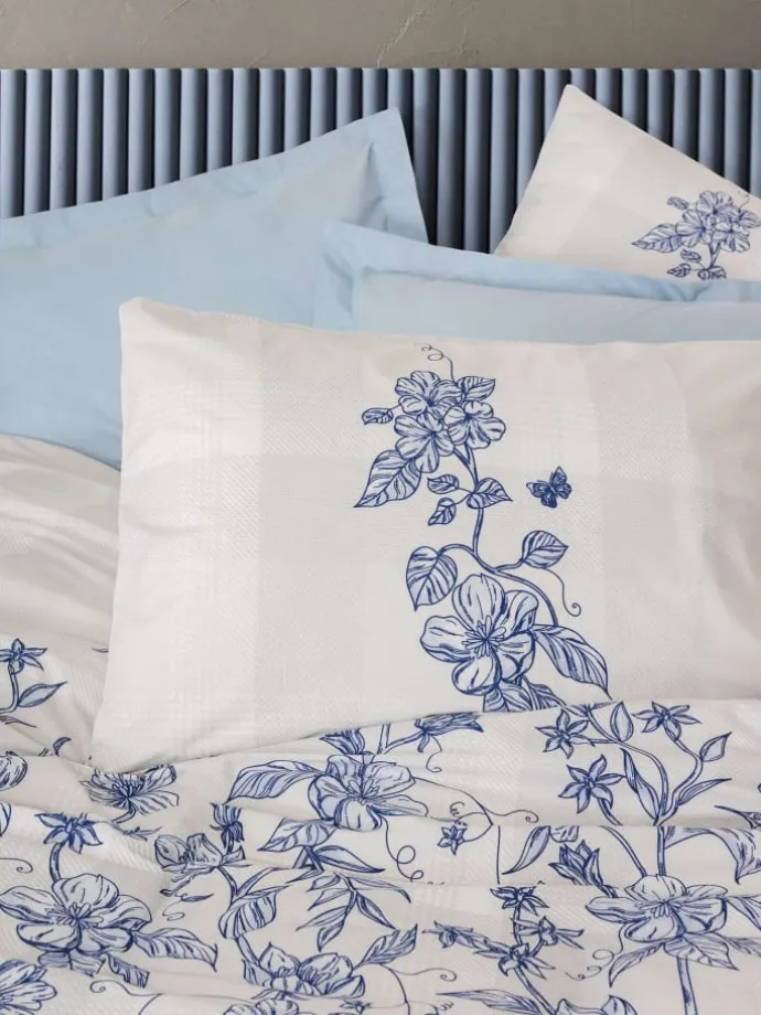 Renforcé-Bettwäsche-Set „Linora“ in Weiß/ Blau