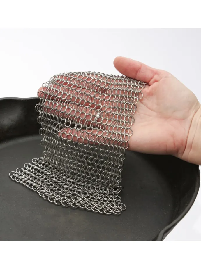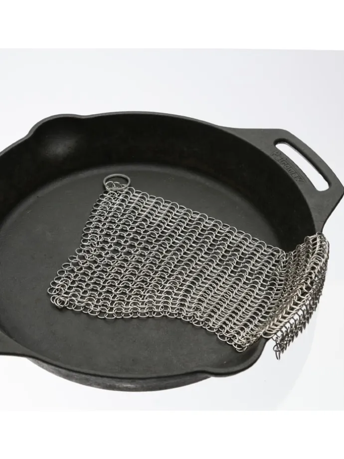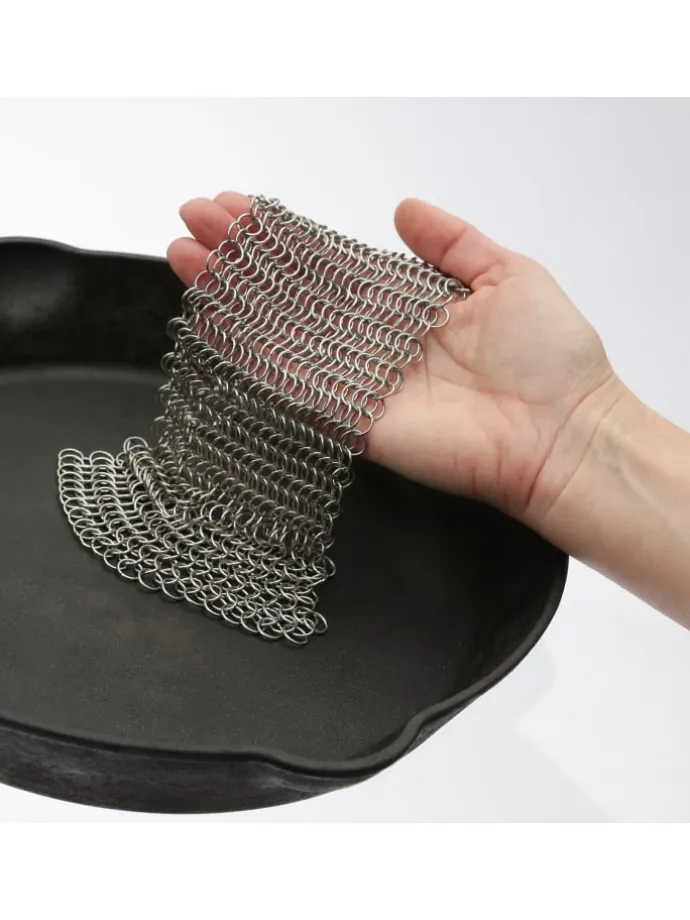 Mit diesem hochwertigen Utensil aus Edelstahl geht es Angebranntem an den Kragen. Mühelos reinigst Du mit dem Ringreiniger Deinen Topf oder Deine Pfanne aus Guss- oder Schmiedeeisen, ohne die wertvolle Patina zu beschädigen. Die Struktur der ineinander fassenden Ringe entfernt schonend Essensrückstände und strapaziert dabei nicht die Oberfläche des Kochgeschirrs.