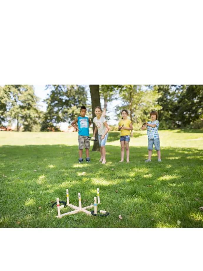 – Inhalt: 5 Ringe und 1 Holzkreuz, auf dem 5 Holzstäbe mit unterschiedlicher Farbmarkierung befestigt sind