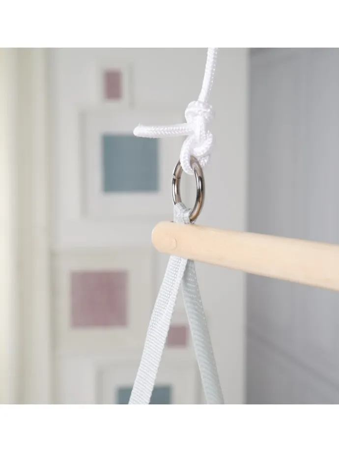 Von Geburt an ist das roba Hängebettchen safe asleep die ideale Wiege für Ihr Baby. An der Decke befestigt haben Sie eine wunderschöne Schlafstätte für Ihr Kind. Durch das sanfte Wiegen findet Ihr Baby ganz leicht in einen wohligen Schlaf. Die Babywiege aus silbergrauen Canvas ist auf allen vier 4 Seiten mit Mesh Stoff gearbeitet, dadurch hat Ihr Baby ein optimales Schlafklima besonders in den warmen Sommermonaten. Das Hängebettchen im modernen silbergrau mit Naturholzelementen passt perfekt in jedes Babyzimmer und ist in Ihrer Wohnung ein echter Hingucker. Das Babybett können Sie von Geburt an bis sich Ihr Kind anfängt hochzuziehen nutzen. Die Befestigung an der Decke ist schnell und unkompliziert. Mit dem 3 Meter langen Seil können Sie die Höhe ganz individuell nach Ihren Wünschen einstellen. Das Hängebettchen ist mit einer hochwertigen gelochten Matratze und Überzug ausgestattet. Unser roba Hängebettchen ist nach der DIN Norm EN 1130:2019 getestet. Geeignet bis zu einer Belastung von 15 kg. Maße: Liegefläche 90 x 45 cm, Tiefe 36 cm. Höhe bis Holzstab ca. 117 cm. Dübel und Haken für die Befestigung an der Decke sind nicht im Lieferumfang enthalten und müssen extra gekauft werden.