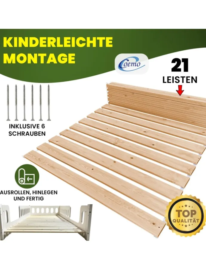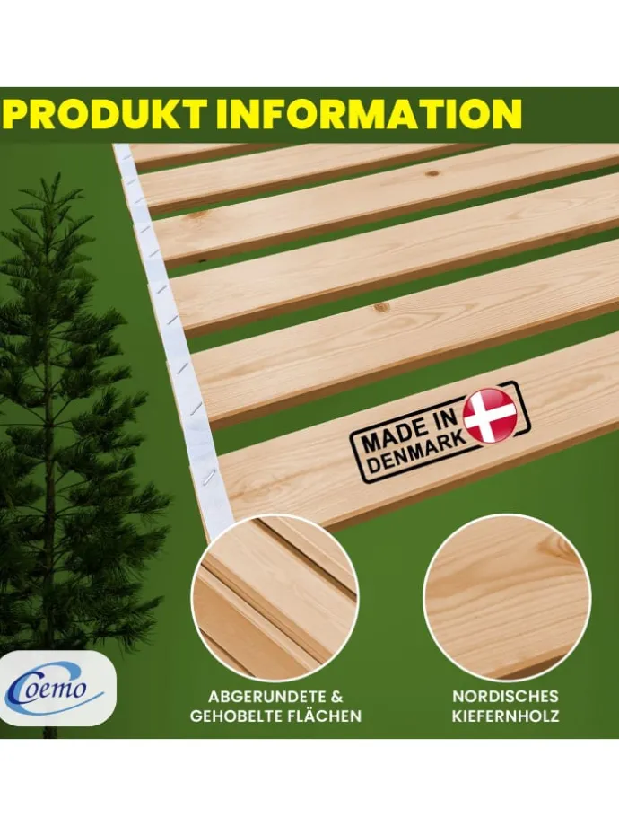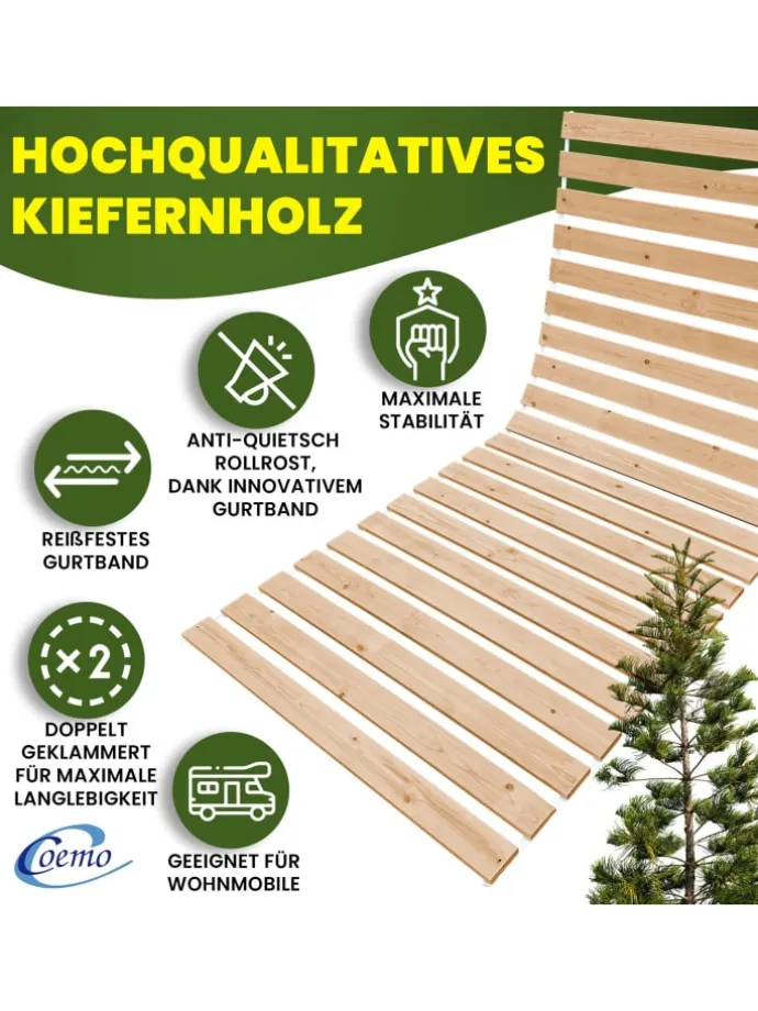 Genießen Sie erholsamen Schlaf mit dem Rollrost Romo aus massivem Holz der Nordischen Kiefer. Dieses Produkt vereint Stabilität, Langlebigkeit und durchdachtes Design – ideal für alle, die durchdachte Schlaflösungen bevorzugen.