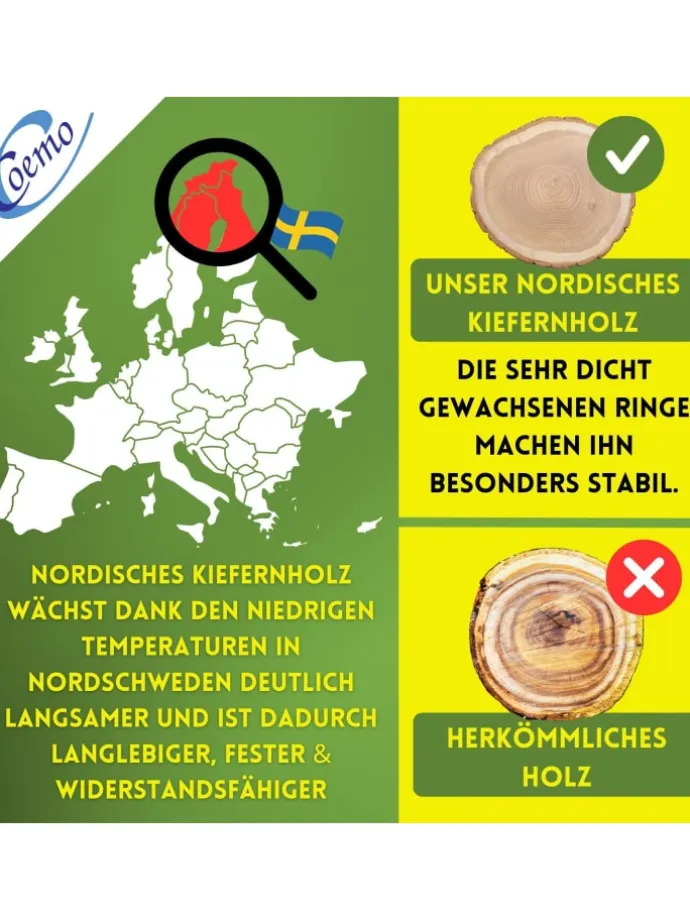 Nordische Kiefer steht für hohe Festigkeit und natürliche Schönheit. Das Holz ist naturbelassen und splitterfrei geschliffen – für ein angenehmes Raumklima und sicheres Liegen. Ob Schlafzimmer, Gästezimmer, Tiny House oder Seniorenbett – der Rollrost Romo fügt sich dank klarer Form in verschiedenste Wohnkonzepte ein. Auch beliebt in Pflegezimmern, möblierten Mietwohnungen und Ferienunterkünften. Viele Kund:innen nutzen den Rollrost in WG-Zimmern, Ferienhaus oder im Van – vor allem wegen der einfachen Montage und platzsparenden Verpackung. Der Rollrost lässt sich kompakt aufrollen, leicht verstauen und transportieren – ideal für spontane Gästebetten.