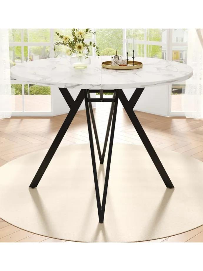 Mit seiner Marmoroptik-Oberfläche, der robusten Konstruktion und flexiblen Standfüßen passt dieser Tisch ideal in moderne Küchen, kleine Essbereiche oder Büros–funktional, platzsparend und elegant zugleich.