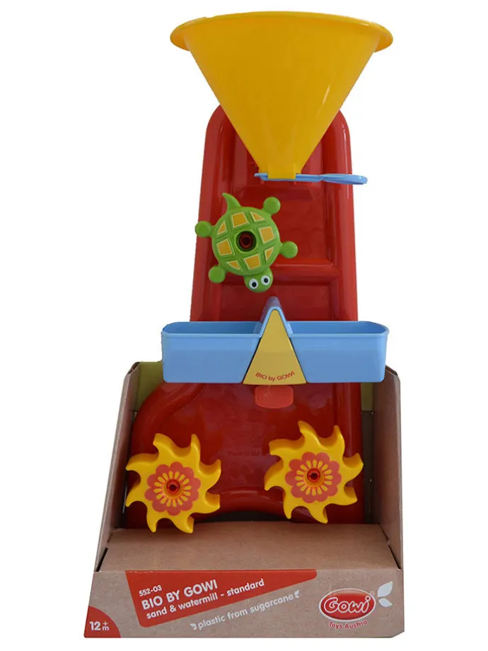 – Dder Inhalt fließt durch ein Schildkrötenrad, eine Wippe und zum Schluss durch zwei Sonnenräder, bis er am Boden angelangt ist