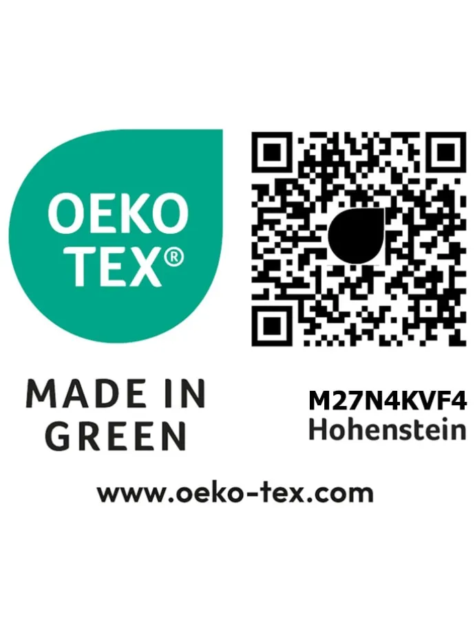 Das Made in Green by OEKO-TEX® -Siegel steht für schadstoffgeprüfte Materialien, umweltfreundliche Betriebe sowie sichere und sozialverträgliche Arbeitsbedingungen.
