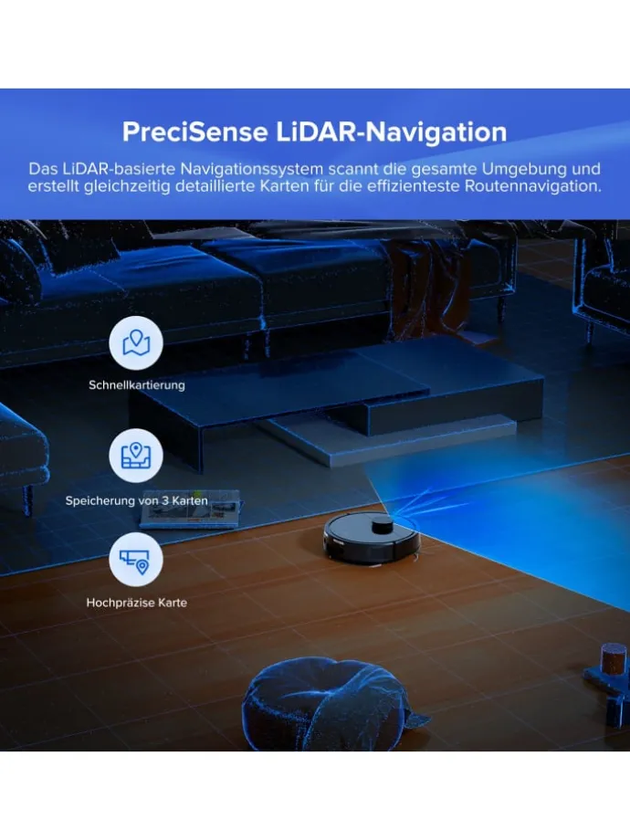 Produktabmessungen:Roboter: 325 x 325 x 99 mm, Dock: 212 x 178 x 259 mm
