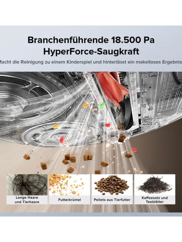 -18.500Pa HyperForce-Saugkraft: Entfernt Mikropartikel aus Teppichfasern und Bodenritzen mit DuoDivide-Borstenbürste.