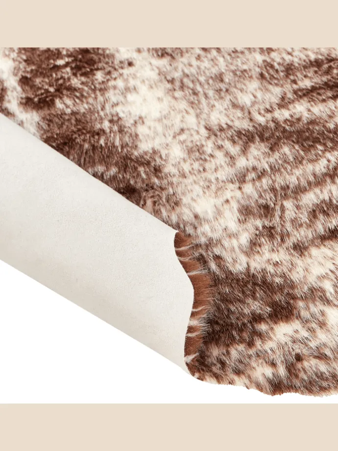Kunstfellteppich Kuhmuster. Dieser bezaubernde und gemütliche Teppich hat eine unregelmäßige Form, die jedem Raum einen rustikalen Charme verleiht. Sein weicher, mehrfarbiger Flor ist einer echten Kuhhaut nachempfunden. Er hat eine rutschfeste Unterseite. Ob neben dem Bett oder neben dem Sofa, er ist perfekt, um Wärme zu spenden, ganz gleich, wo man ihn braucht.