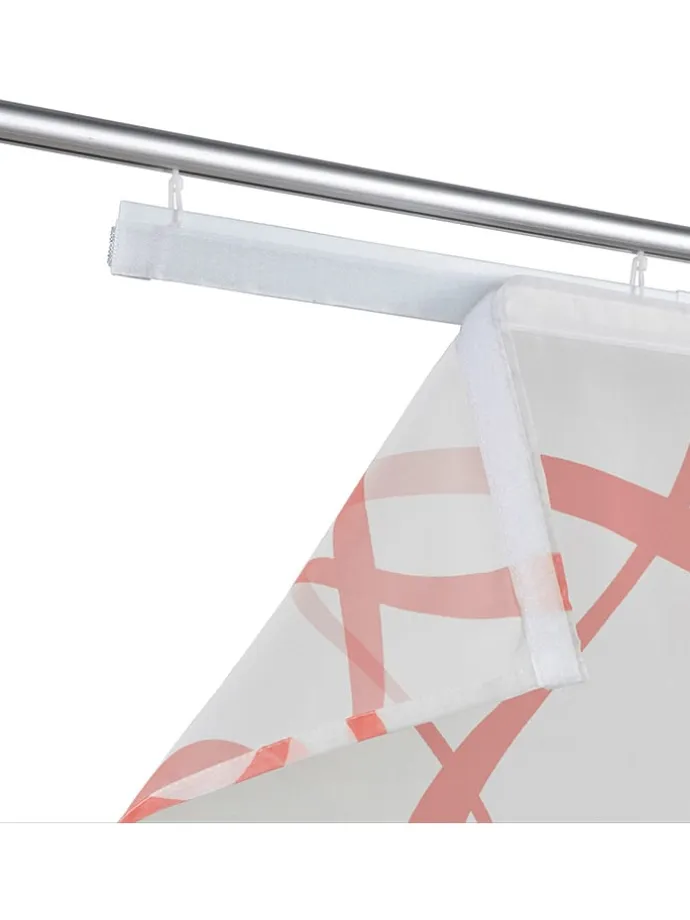 – Aufhängung per mitgelieferter Klettschiene mit Röllchen und Flausch-/Klettband oben