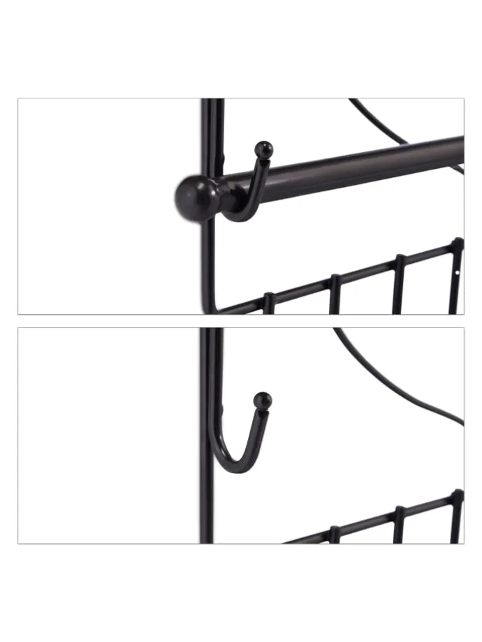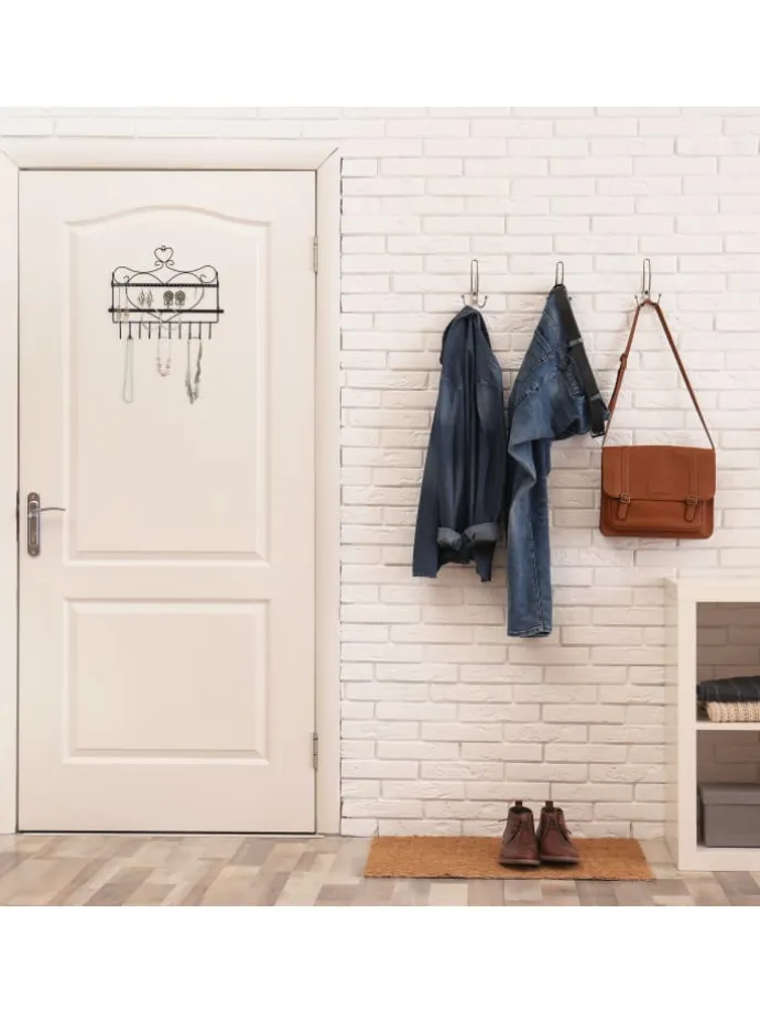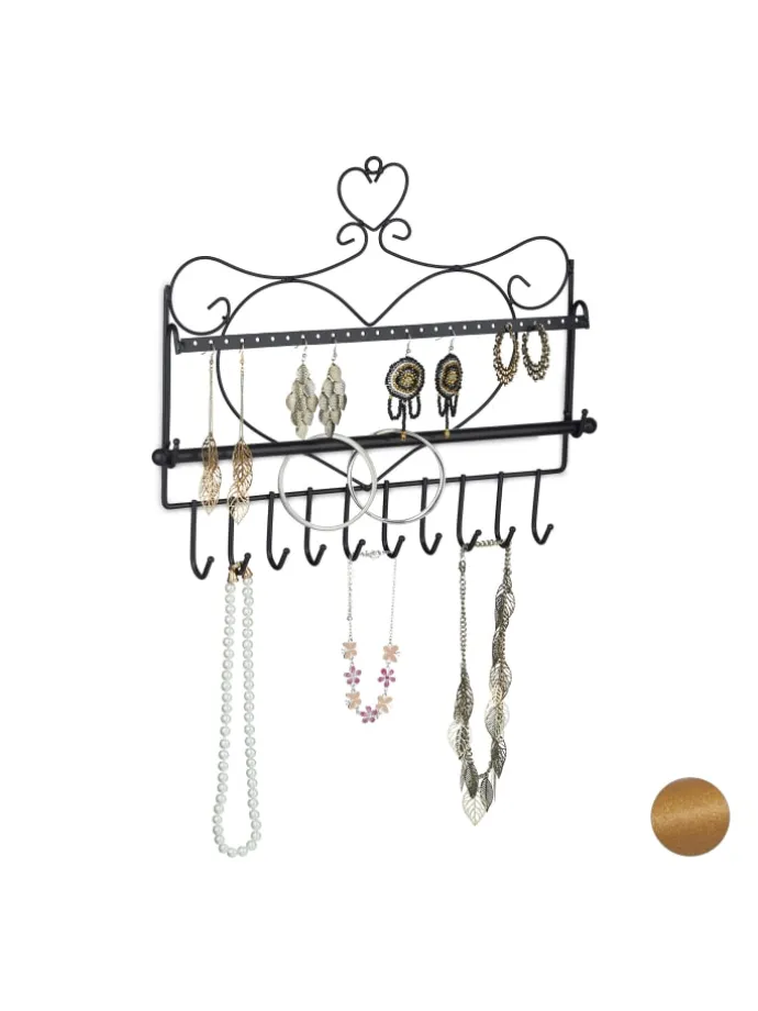 Mit diesem Schmuckhalter bewahren Sie Ihren Schmuck übersichtlich und geordnet auf. Der Schmuckorganizer bietet Platz für Ohrringe und -stecker, Armbänder, Uhren und Halsketten. Da die Schmuckleiste an die Wand montiert wird, lassen sich auch lange Halsketten problemlos aufhängen und sind vor Verheddern geschützt. Dank der romantischen Vintage-Optik ist der Ohrringhalter zudem ein echter Hingucker und eine stylische Präsentationsmöglichkeit für Ihren Lieblingsschmuck.