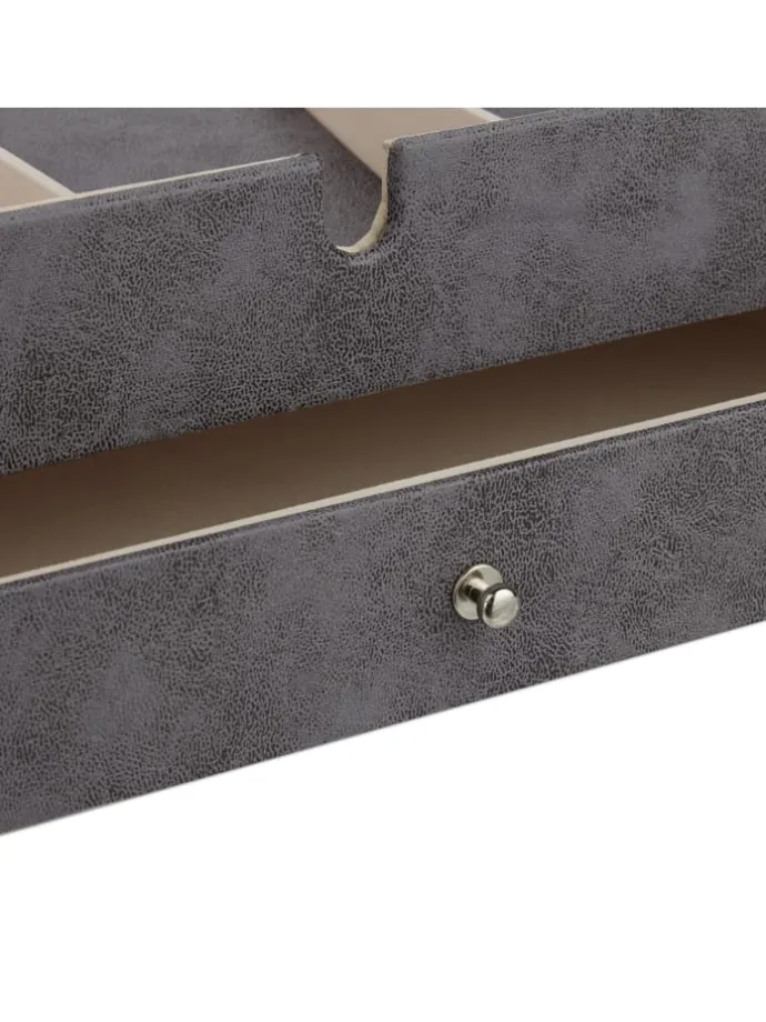 Mit diesem Schmuck-Organizer bewahrst Du Deine liebsten Schmuckstücke geordnet und übersichtlich auf. Die Schublade und die verschiedenen Fächer bieten Stauraum für Halsketten, Armbänder, Ohrringe und Brillen, Ringe werden ordentlich in der Schmuckbox verstaut. Der weiche Samtbezug der Ringlade bietet dabei Schutz vor Kratzern. Das elegante Design in Lederoptik macht den Schmuckbehälter zu einem tollen Hingucker auf dem Schmink- und Frisiertisch.