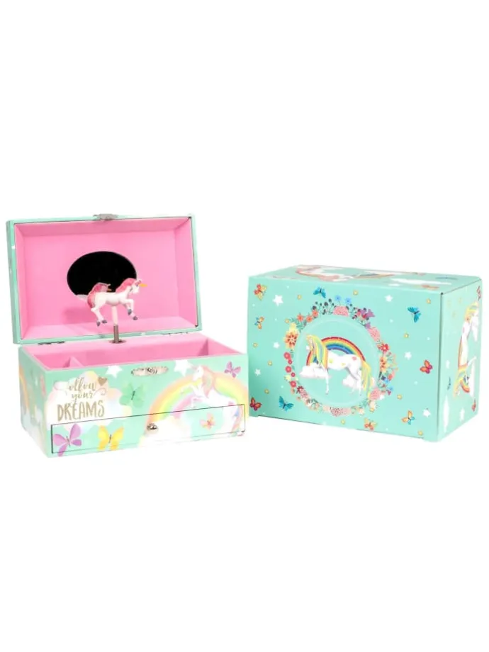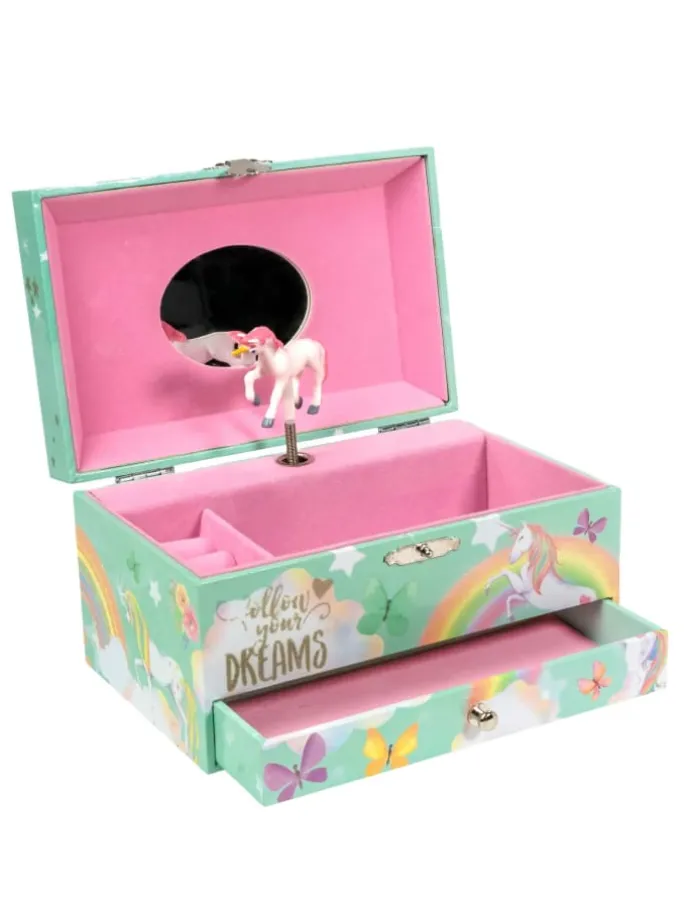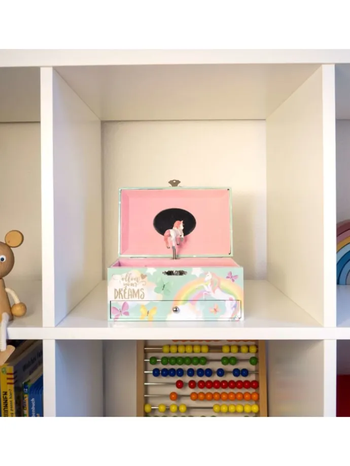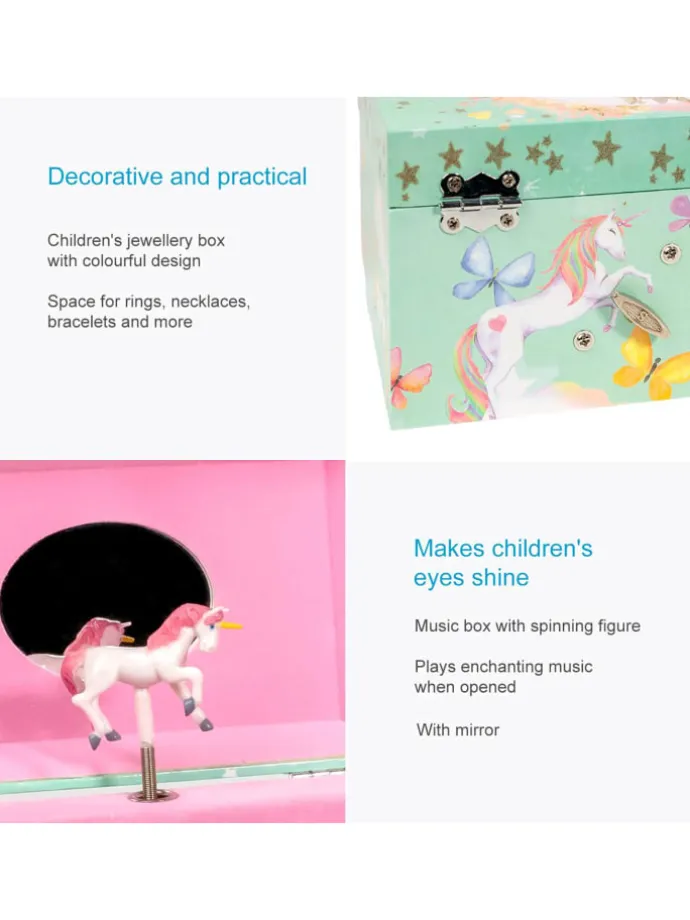 Die integrierte Spieluhr bezaubert mit einer drehenden Einhornfigur oder Ballerinafigur und einer sanften Melodie, die die Fantasie anregt und für zauberhafte Momente sorgt.