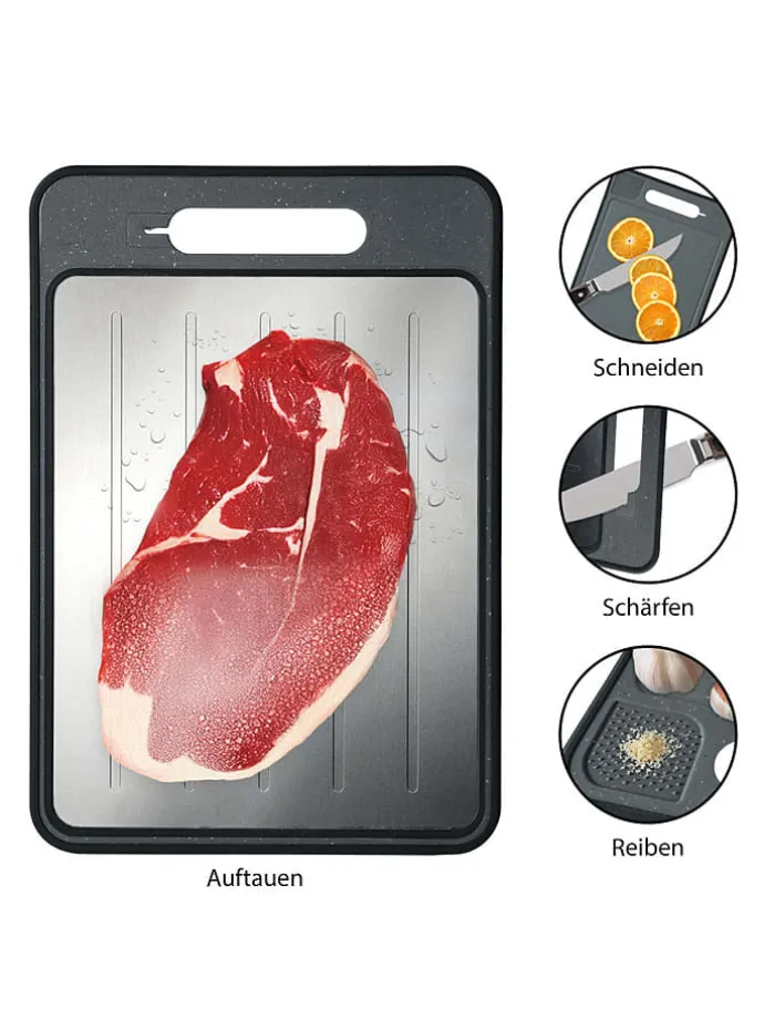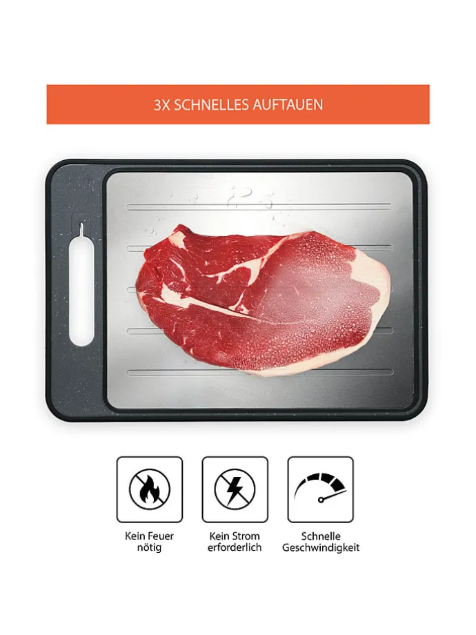 – Auftaufunktion: die Metallplatte leitet Kälte effizient ab und sorgt so für eine schnelle Temperaturangleichung