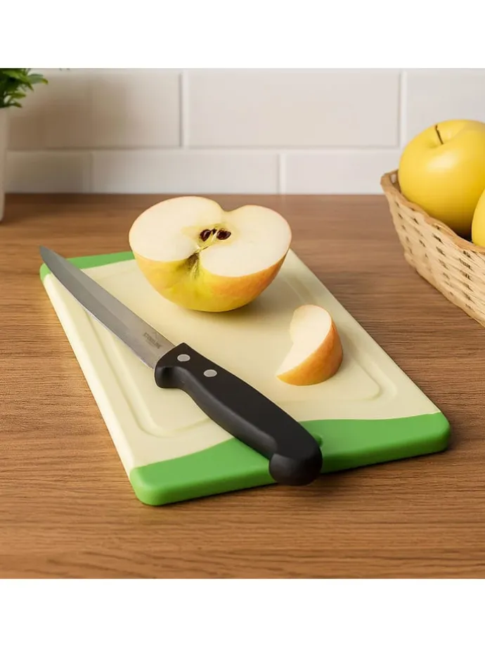 Sie können die Schneidebretter beidseitig verwenden, denn sie besitzen zwei Arbeitsflächen für noch mehr Flexibilität. Wenn Sie gerade Fleisch geschnitten haben, können Sie das Brett einfach umdrehen und schon haben Sie zum Zerkleinern von Gemüse und Kräutern eine frische und saubere Arbeitsfläche parat.
