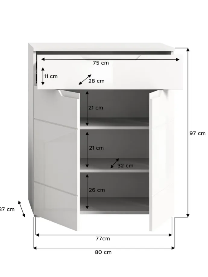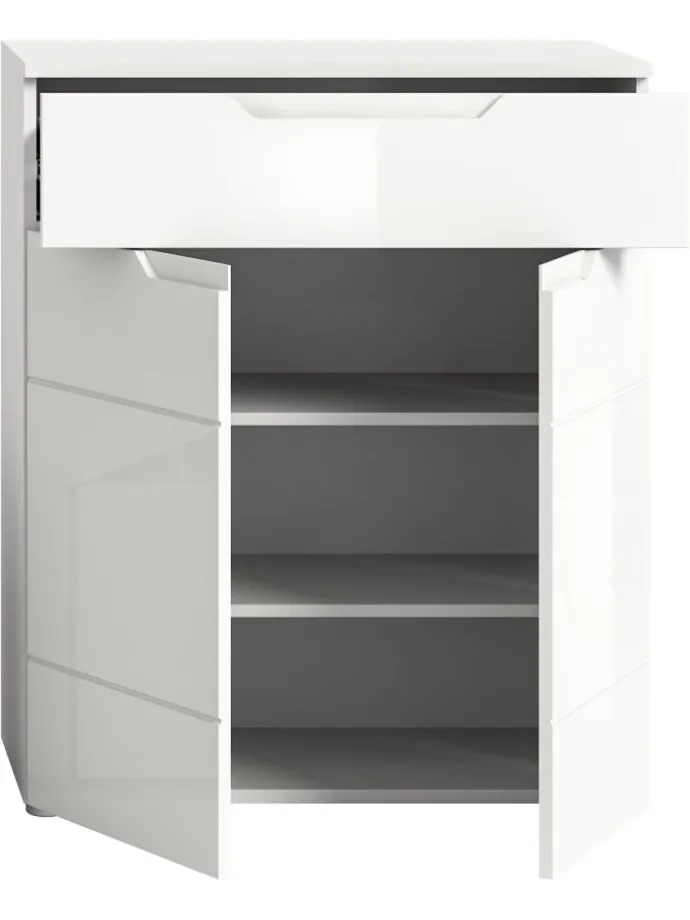 Schuhkommode (B/H/T: 80x97x37 cm) in weiß und weiß Hochglanz