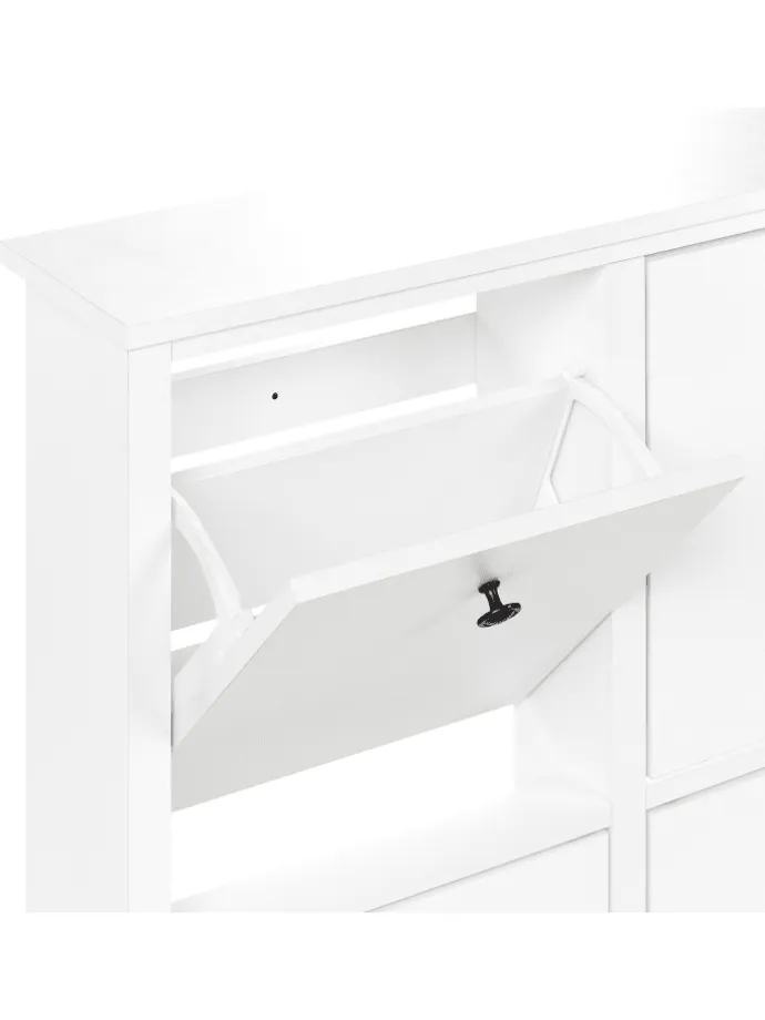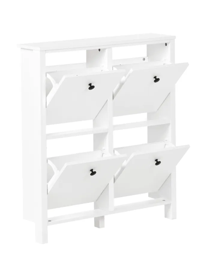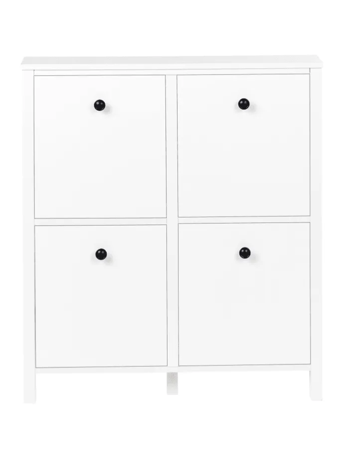Geräumiges Schuhregal im skandinavischen Stil. Dieser elegante und praktische Schuhschrank bietet Platz für bis zu acht Paar Schuhe. Sein minimalistisches Design und die weiße Oberfläche machen ihn zu einer idealen Ergänzung für jedes Zuhause, während die Fächer eine bequeme Möglichkeit bieten, Ihre Schuhe zu organisieren. Perfekt für alle, die Platz sparen und Ordnung halten wollen.