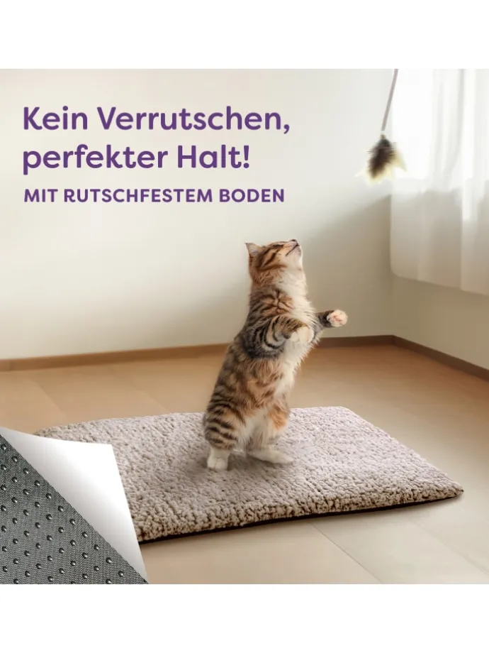 STANDFEST & SICHER: Die rutschfeste Unterseite sorgt dafür, dass die Decke auch auf glatten Oberflächen an Ort und Stelle bleibt. Keine rutschigen Überraschungen für Haustiere.