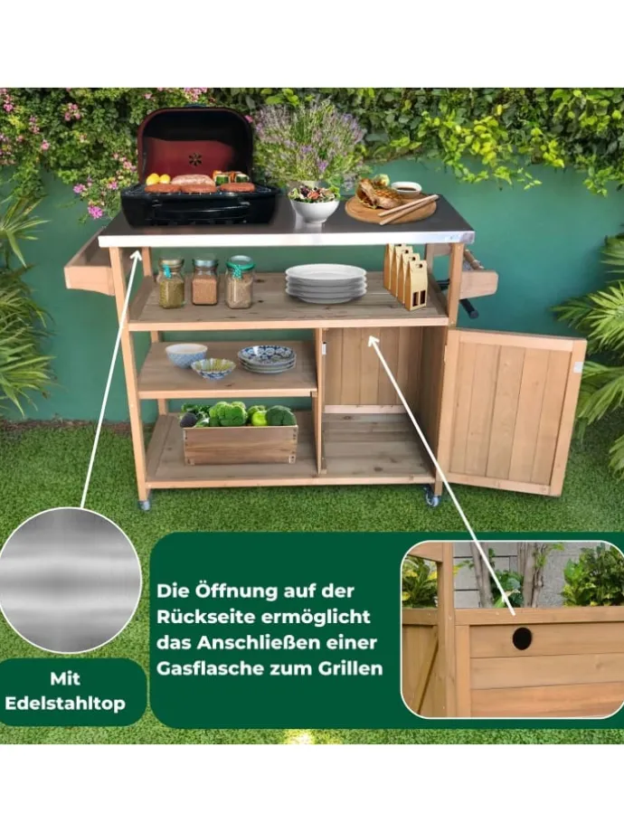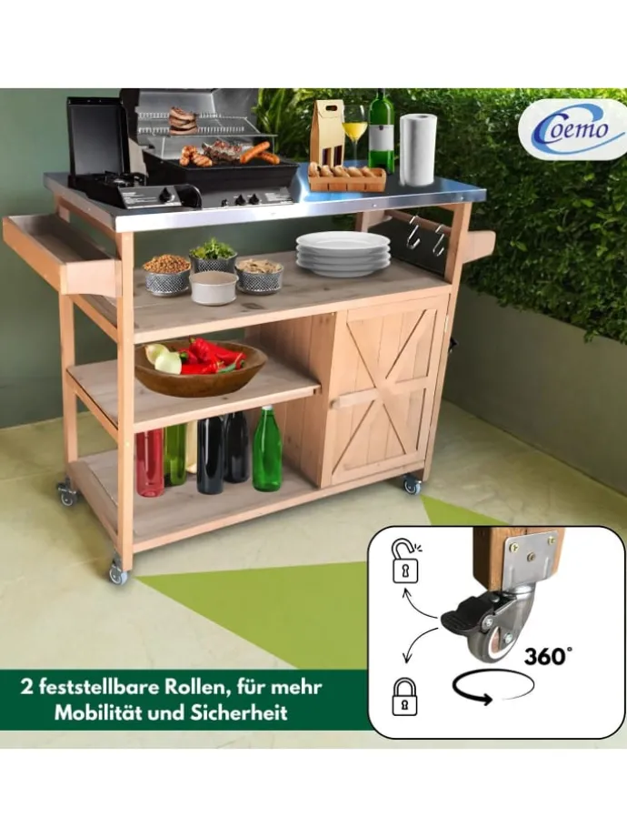 Einsatzmöglichkeiten: Als Grillwagen, Servierwagen oder mobile Kücheninsel