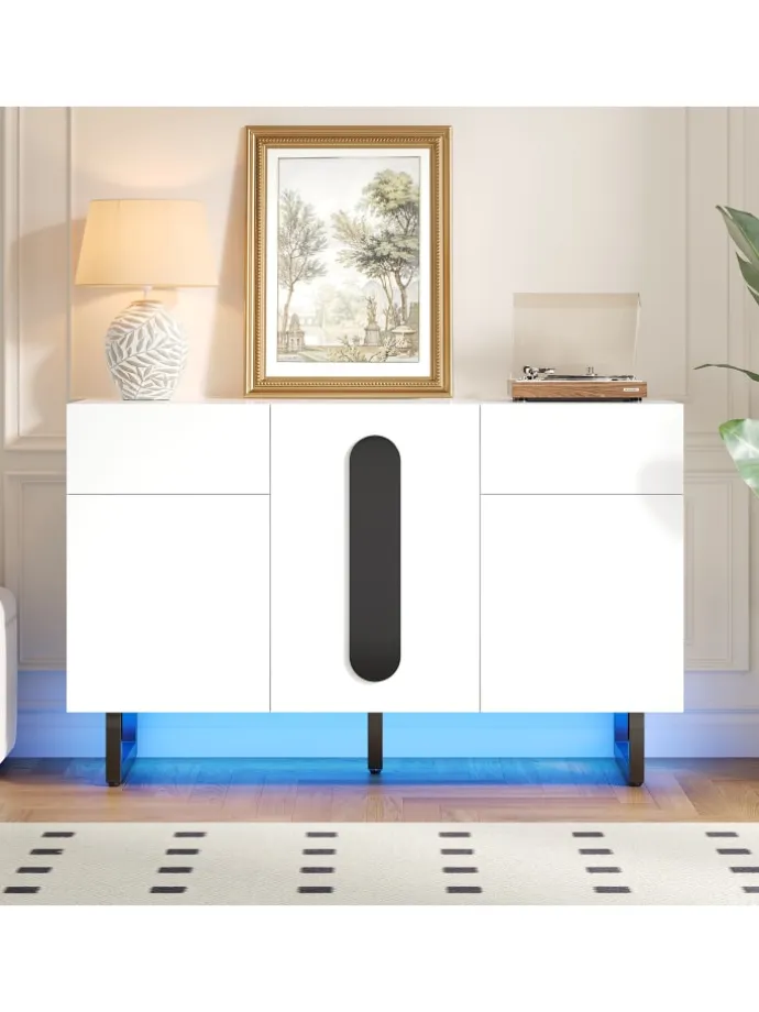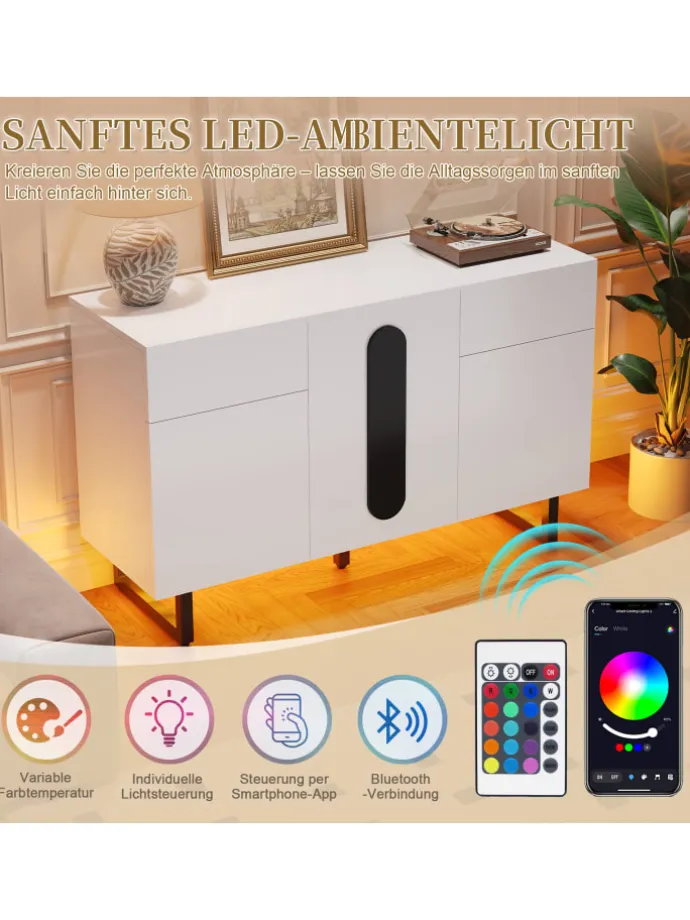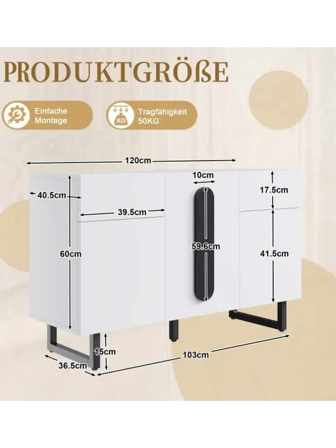Dank der robusten Konstruktion aus hochwertigem Material ist das Sideboard stabil, langlebig und pflegeleicht. Es eignet sich als Buffet, Wohnzimmerschrank oder Hausbar und passt perfekt in moderne, skandinavische Wohnstile.