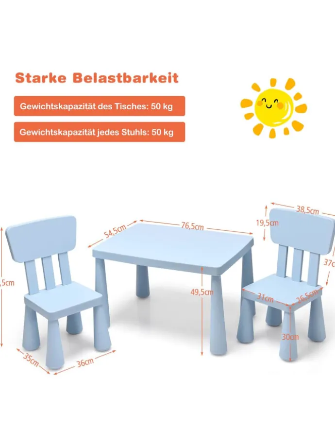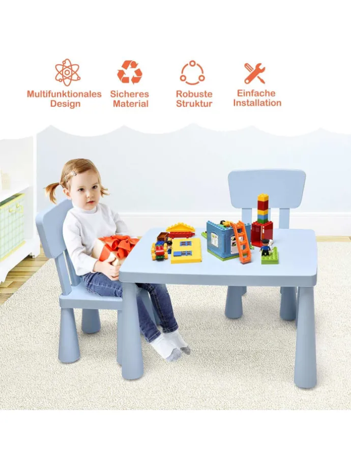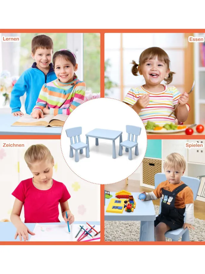 Bieten Sie Ihren Kindern einen Platz zum Schreiben, Malen und Essen mit diesem Kindertisch und den 2 Stühlen!