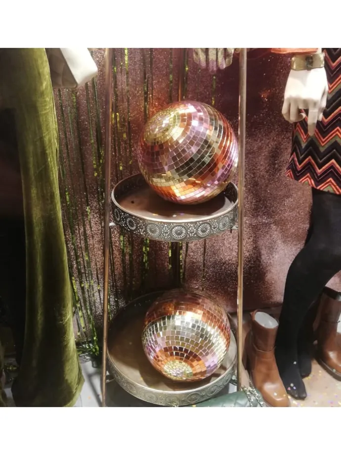 Kleinere und damit mehr Spiegelfacetten für besseren Glanz. Ideal für Gala-Events. Formstabiler Kunststoffkern, Echtglasspiegel, Fallsicherung (ab 30cm)
