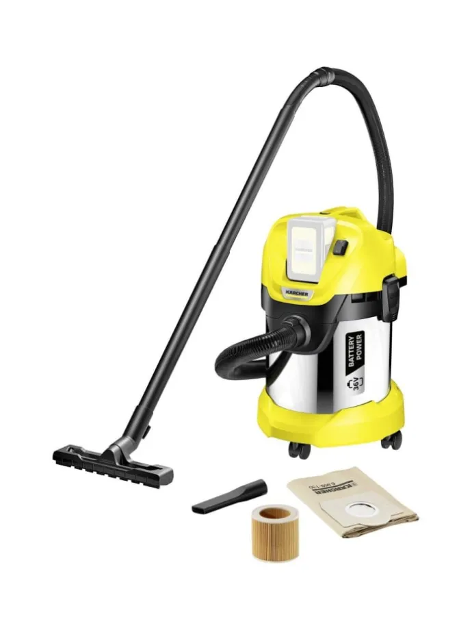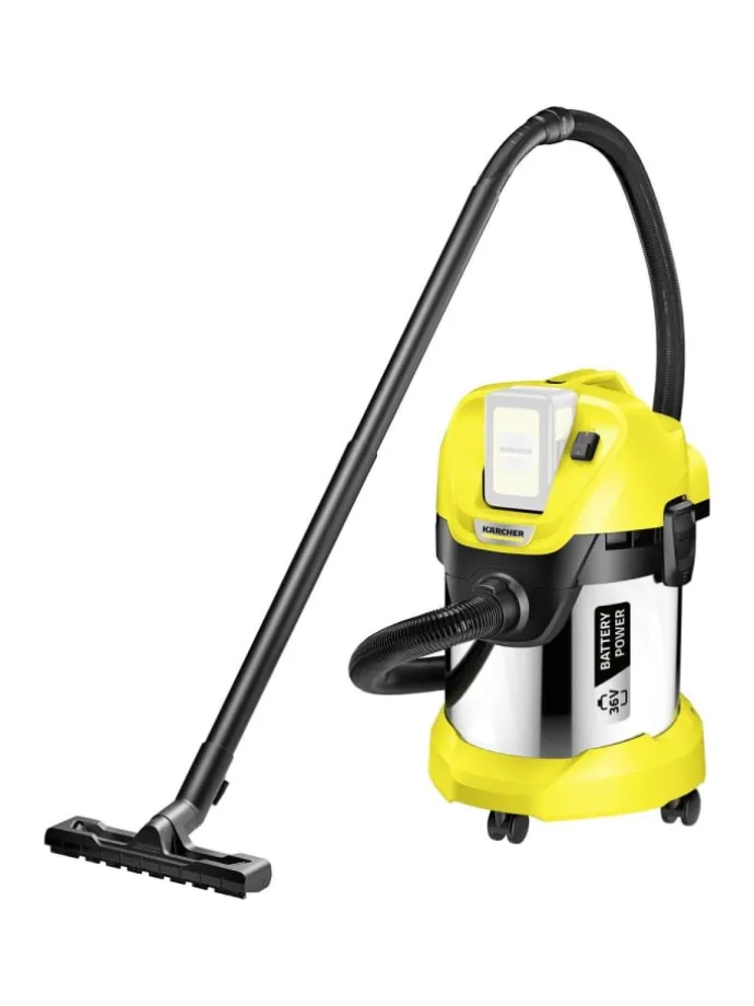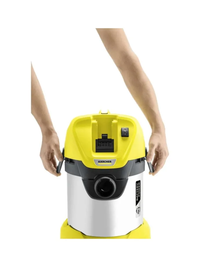 Kärcher Mehrzwecksauger WD 3 Battery PremiumDie Premium-Variante des WD 3 Battery mit 17-l-Edelstahlbehälter. Der akkubetriebene Mehrzwecksauger inkl. Patronenfilter bietet max. Bewegungsfreiheit. Akku nicht im Lieferumfang enthalten.