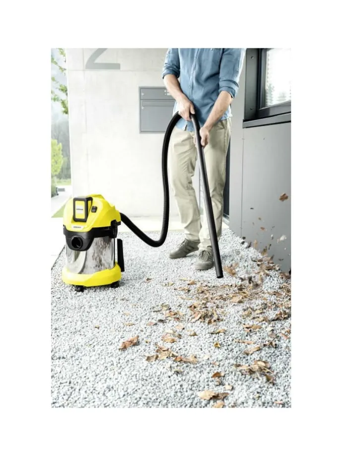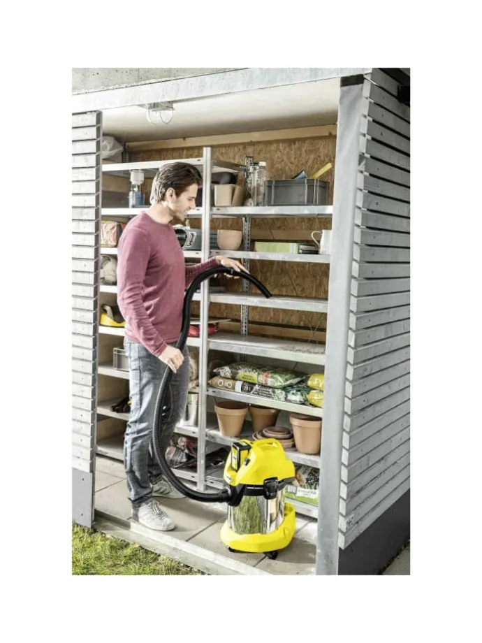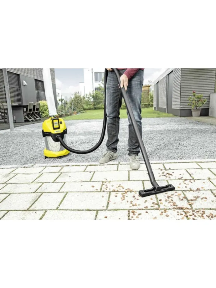 Der akkubetriebene Mehrzwecksauger WD 3 Battery Premium bietet nicht nur maximale Bewegungsfreiheit beim Saugen. Er überzeugt gleich mit einer ganzen Reihe an Vorteilen. Zum Beispiel mit dem 17 Liter fassenden und äußerst stabilen Edelstahlbehälter. Einem Patronenfilter, der das Aufsaugen von trockenem und nassem Schmutz ohne Filterwechsel zum Kinderspiel macht. Dem abnehmbaren Handgriff für das Anbringen von Zubehör direkt am strömungsoptimierten Saugschlauch. Einer Clips-Bodendüse inklusive Mischeinsatz für eine ideale Schmutzaufnahme. Einer Laufzeit von 15 Minuten mit dem 36 V / 2,6 Ah Li-Ion Wechselakku und 30 Minuten mit dem 36 V / 5,2 Ah Li-Ion Wechselakku (nicht im Lieferumfang enthalten). Einer Parkposition für Saugrohr und Bodendüse. Und zusätzlichen Extras wie die Blasfunktion, das „Pull n Push“-Verschlusssystem, der ergonomische Tragegriff und die äußerst praktische Zubehöraufbewahrung.