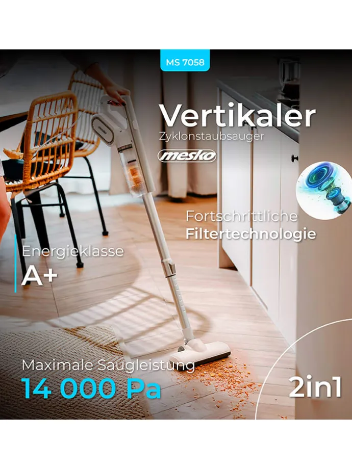 – Zyklontechnologie für starke und konstante Saugkraft (14.000 Pa)