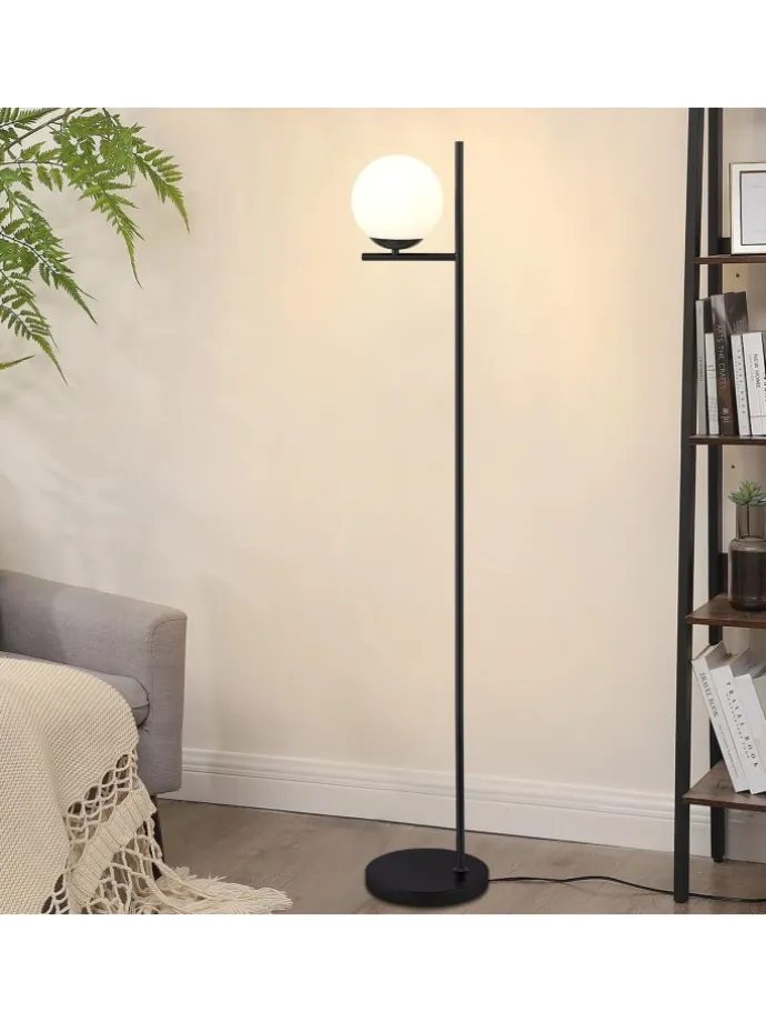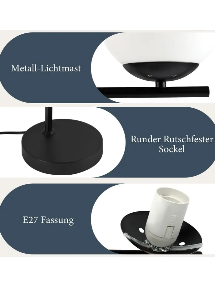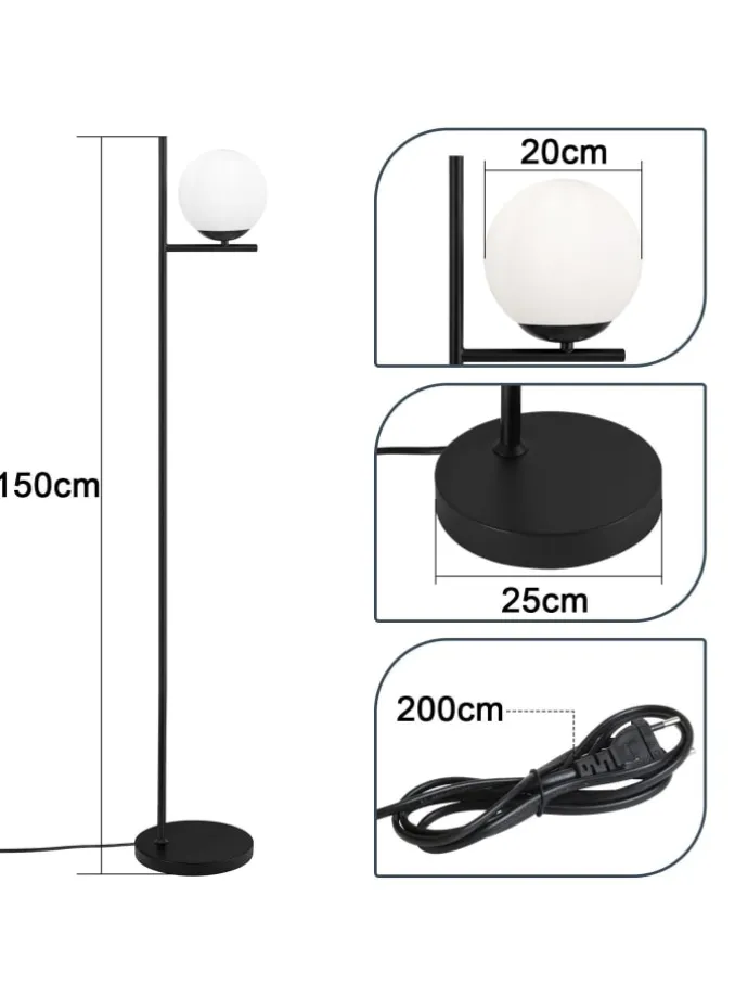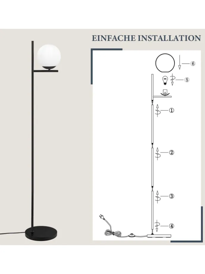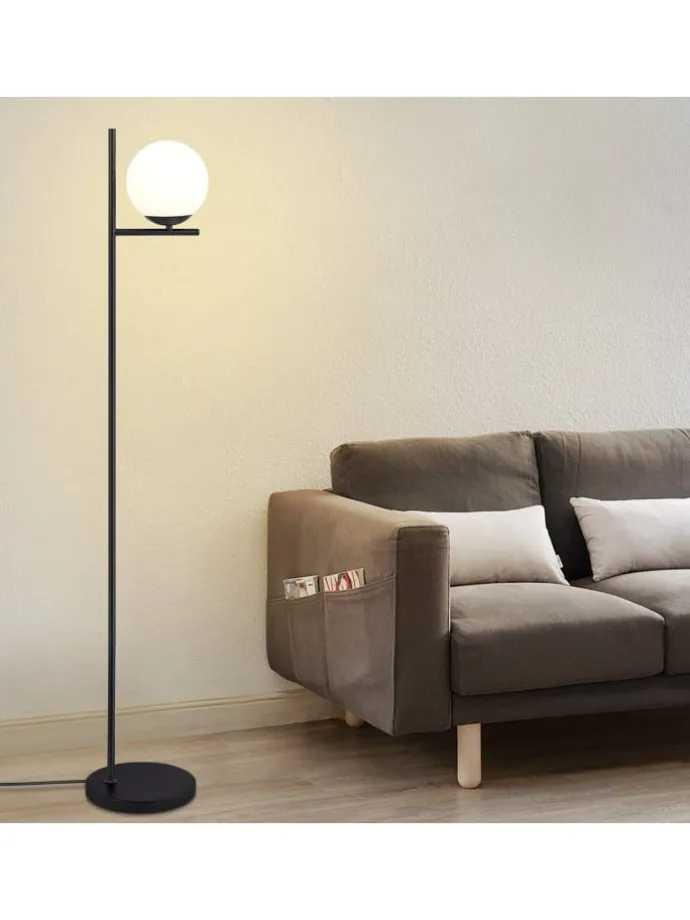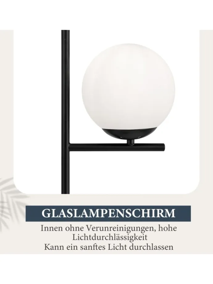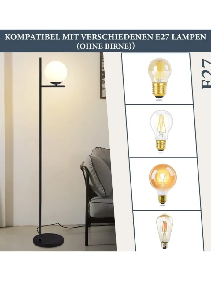 [Hochwertiges Material] Diese Stehlampe besteht aus hochwertigem Metall,schwarzener Metallstange + milchig weißem Glasschirm + rutschfestem Sockel + Fußschalte.Hochwertiger Glasschirm mit weicher und gleichmäßiger Lichtverteilung und hoher Lichtdurchlässigkeit schafft eine warme und gemütliche Atmosphäre und macht Ihren Wohnraum elegant und komfortabel. [Standard E27-Fassung] Diese Stehleuchte ist mit einer E27-Fassung kompatibel, so dass Sie verschiedene Arten von Glühbirnen je nach Ihren Vorlieben wählen können, um verschiedene Beleuchtungsbedürfnisse und Atmosphären zu schaffen(Max. 40W ohne Leuchtmittel) [Stabilität und Praktikabilität] Die Stehlampe hat einen runden Metallsockel mit einer rutschfesten Struktur an der Unterseite, um stabilen Halt zu bieten. Einfaches Fußschalterdesign, wenn Sie das Licht ein- und ausschalten möchten, treten Sie einfach darauf, um das Licht ein- und auszuschalten, ohne sich bücken zu müssen, bequem und schnell. [Modernes Retro-Design] Das einzigartige moderne Retro-Design macht sie zu einem Blickfang in der Innenraumgestaltung. Sie verbindet moderne Eleganz mit nostalgischem Charme und passt perfekt zu verschiedenen Einrichtungsstilen, um Ihrem Zuhause eine modische und individuelle Note zu verleihen.