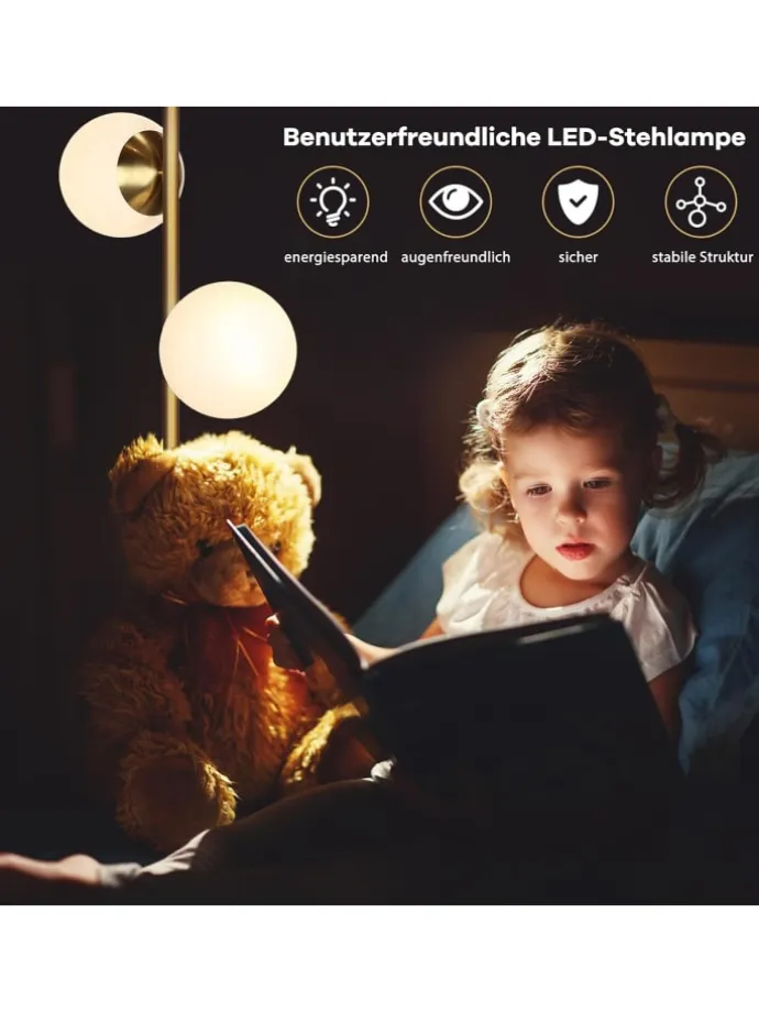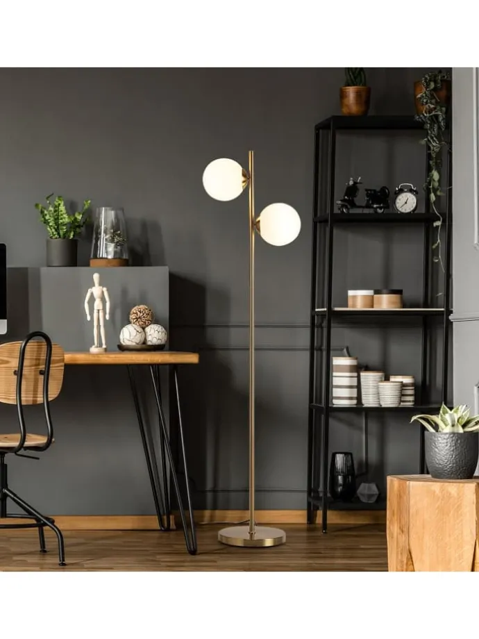 Beleuchten und dekorieren Sie Ihr Zimmer mit dieser eleganten Kugel-Stehlampe! Die schlichten Stiele und die milchig-weißen Milchglaskugeln schaffen eine gehobene Atmosphäre, die den Mid-Century-, zeitgenössischen und modernen Dekorationsstilen entspricht. Sie müssen sie nur in einer beliebigen Ecke Ihres Hauses platzieren, und sie kann Ihrem Raum einen besonderen Charme verleihen. Diese Stehlampe strahlt warmes, schönes Licht aus, das in jedem Raum Ihres Zuhauses einen gemütlichen, komfortablen und gut beleuchteten Raum schafft. Diese Kugel-Stehleuchte ist eine Alternative zu unangenehmen Deckenleuchten und sorgt für eine sanfte und dennoch großzügige Raumbeleuchtung, um Ihren Innenraum zu erhellen. Für zusätzlichen Komfort verfügt sie über einen Fußschalter, mit dem Sie die Lampe einfach ein- und ausschalten können.