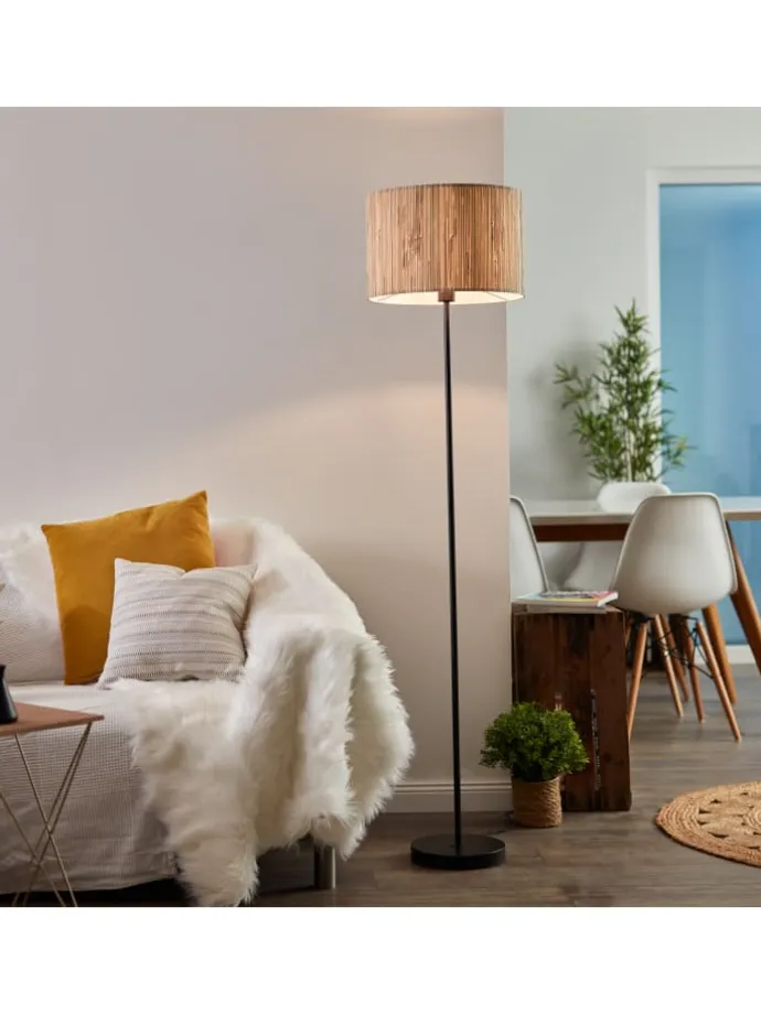 Die Stehlampe Valentin überzeugt mit einer harmonischen Kombination aus natürlichem Holz-Lampenschirm und schlankem schwarzen Metallgestell. Ihr schlichtes, aber stilvolles Design fügt sich perfekt in moderne oder skandinavisch eingerichtete Wohnräume ein.