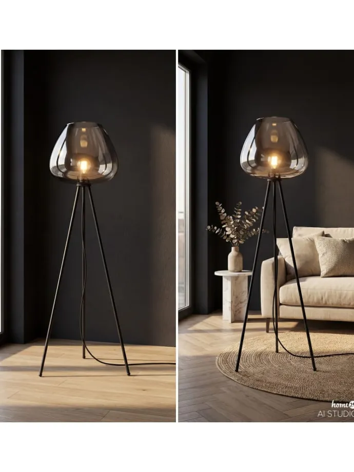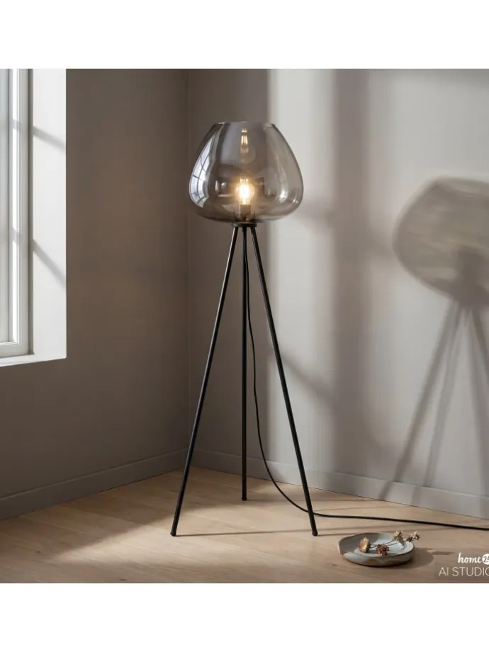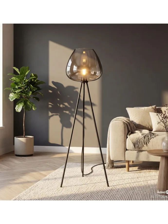 Diese bodenstehende Beleuchtung sorgt mit ihrem weitläufigen Rauchglasschirm für eine stimmungsvolle Atmosphäre in Ihren Lesezonen. Der standfeste Sockel aus pulverbeschichtetem Eisen garantiert eine hohe Stabilität im täglichen Gebrauch. Mit ihrer stattlichen Bauhöhe setzt die Stehleuchte markante Akzente im Raum. Eine ideale Lichtquelle zur Aufhellung von Wohnzimmern oder gemütlichen Wohnecken.
