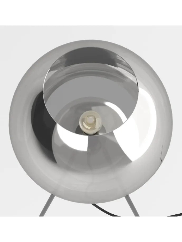 – Großflächiger Schirm aus Rauchglas auf einem soliden Eisensockel.