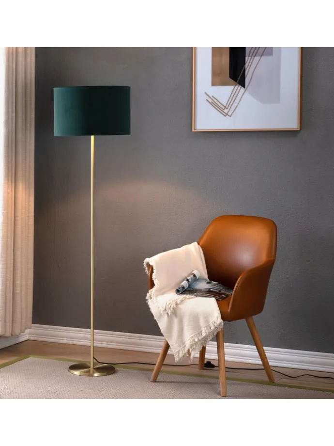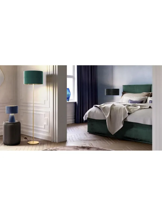 Diese einflammige Stehleuchte sorgt durch ihren eleganten schwarzen Samtschirm für besonders weiche Lichtakzente und eine stimmungsvolle Atmosphäre in Ihrem Zuhause. Die schlanke Metallsäule garantiert einen stabilen Stand und macht die Leuchte zur idealen Lichtquelle für den Wohn- oder Schlafbereich. Dank des hochwertigen Textilbezugs wird das Licht indirekt und angenehm im Raum verteilt, perfekt für entspannte Lesestunden. Ein dekoratives Beleuchtungselement, das moderne Eleganz und Wohnlichkeit stilsicher vereint.