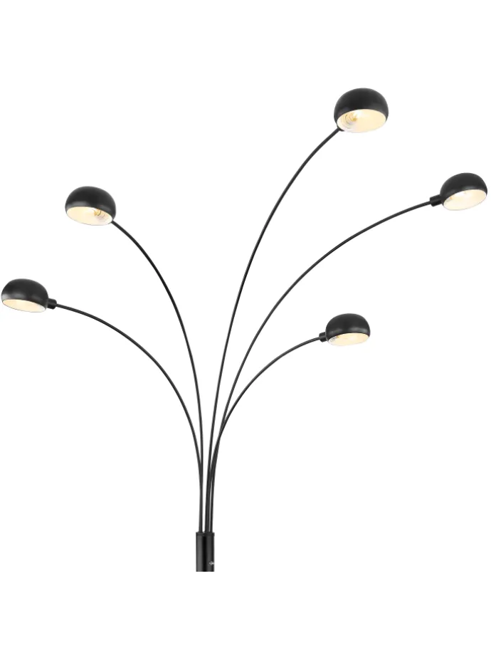 Stehleuchte Metall schwarz, Marmor schwarz, LxBxH: 1300x1200x2000mm, Kabellänge 1800mm, exkl. 5x E14 40W 230V