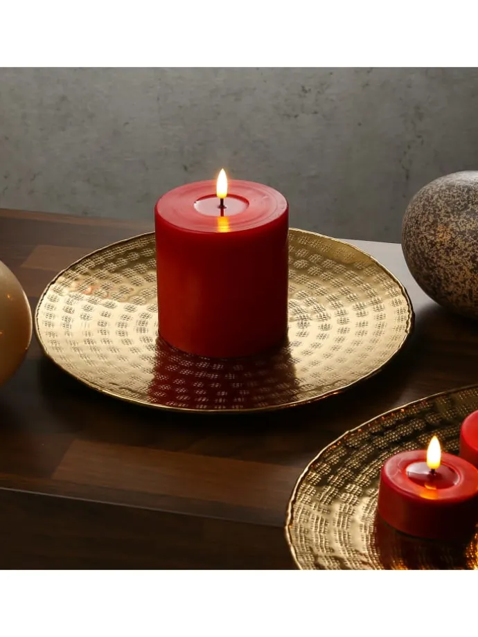 Das gehämmerte, goldenen Tablett aus Aluminium ist genau richtig zum Anrichten und Servieren von Speisen. Ob auf Deiner Party, an der Candy Bar auf Deiner Hochzeit oder auf dem Esszimmertisch an Weihnachten. Ideal ist das runde Dekotablett auch zum Anrichten einer Käseplatte, Häppchen etc.. Kerzen sehen auf dem Tablett aber auch genial aus.