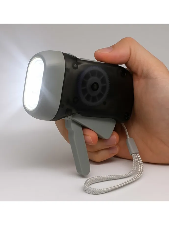 – Energieversorgung: erzeugt Strom über eine Handkurbel (keine Batterien erforderlich)