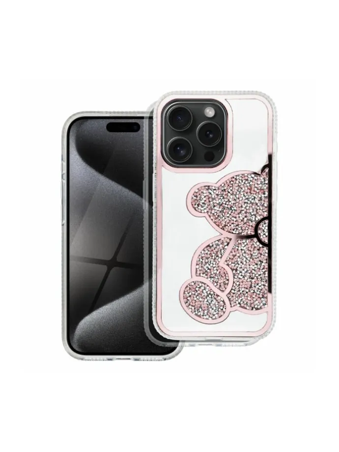 Teddy Bear ist eine stilvolle und funktionelle Smartphone-Hülle, die sich durch ein charakteristisches, glitzerndes Teddybär-Muster, erhabene Kanten und Kunststoff auszeichnet.