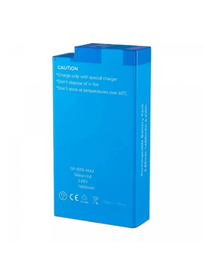 Der wiederaufladbare Akku der Marke Telesin für die GoPro MAX-Kamera bietet eine effiziente Stromquelle. Das Produkt verfügt über eine Kapazität von 1600 mAh und eine langlebige, feuerfeste ABS-Kunststoffkonstruktion. Es unterstützt einen Schnellladevorgang und Schutzprotokolle gegen Überhitzung oder Kurzschluss.