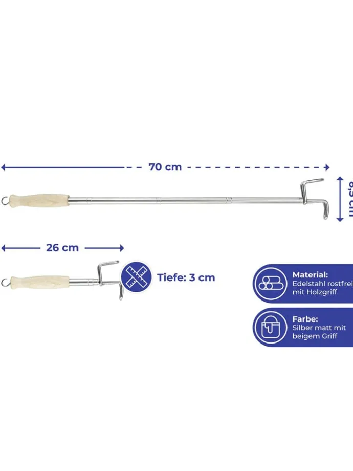 – Material: Holz, Edelstahl
