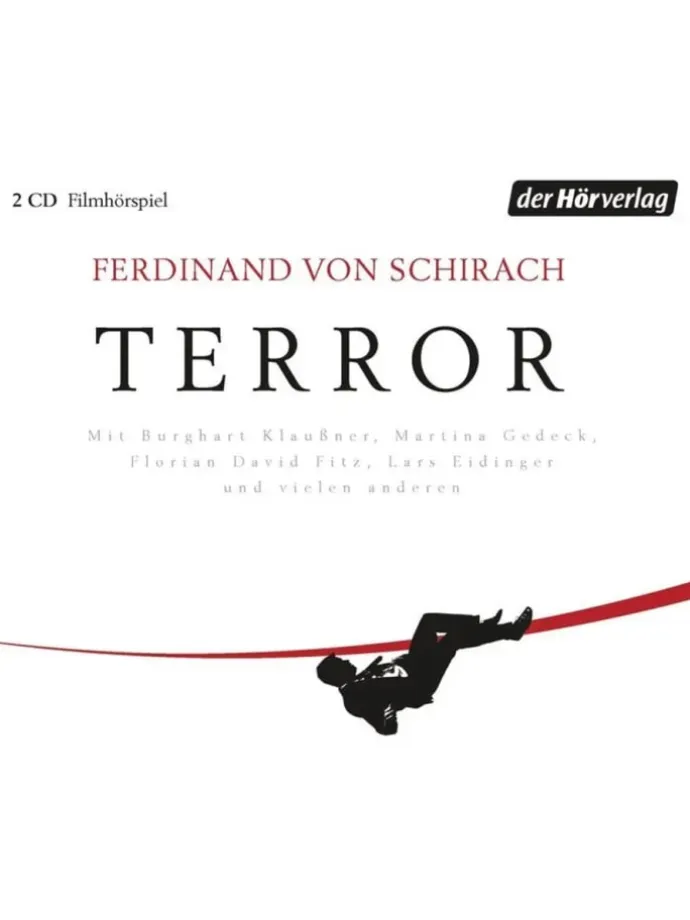 Ein Terrorist kapert eine Passagiermaschine und zwingt die Piloten, Kurs auf ein voll besetztes Fußballstadion zu nehmen. Gegen den Befehl seiner Vorgesetzten schießt ein Kampfpilot der Luftwaffe das Flugzeug in letzter Minute ab, alle Passagiere sterben. Der Pilot muss sich vor Gericht für sein Handeln verantworten. Seine Richter sind die Theaterbesucher, sie müssen über Schuld oder Unschuld urteilen. Das Hörspiel von Ferdinand von Schirach ist von bedrückender Aktualität. Es stellt die Frage, wie wir in Zukunft leben wollen. Werden wir uns für die Freiheit oder für die Sicherheit entscheiden? Wollen wir, dass die Würde des Menschen trotz der Terroranschläge noch gilt?