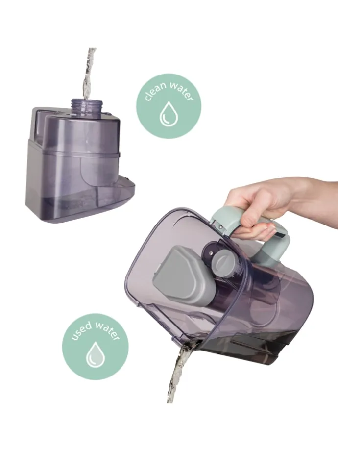 Die beiden Behälter für sauberes und schmutziges Wasser sind abnehmbar, wodurch das Befüllen, Entleeren und Reinigen vereinfacht wird. Die Aufbewahrungsmöglichkeiten für die Bürste, den 1,1 m langen Schlauch und die Stromkabel sorgen ebenfalls für eine komfortable Nutzung.