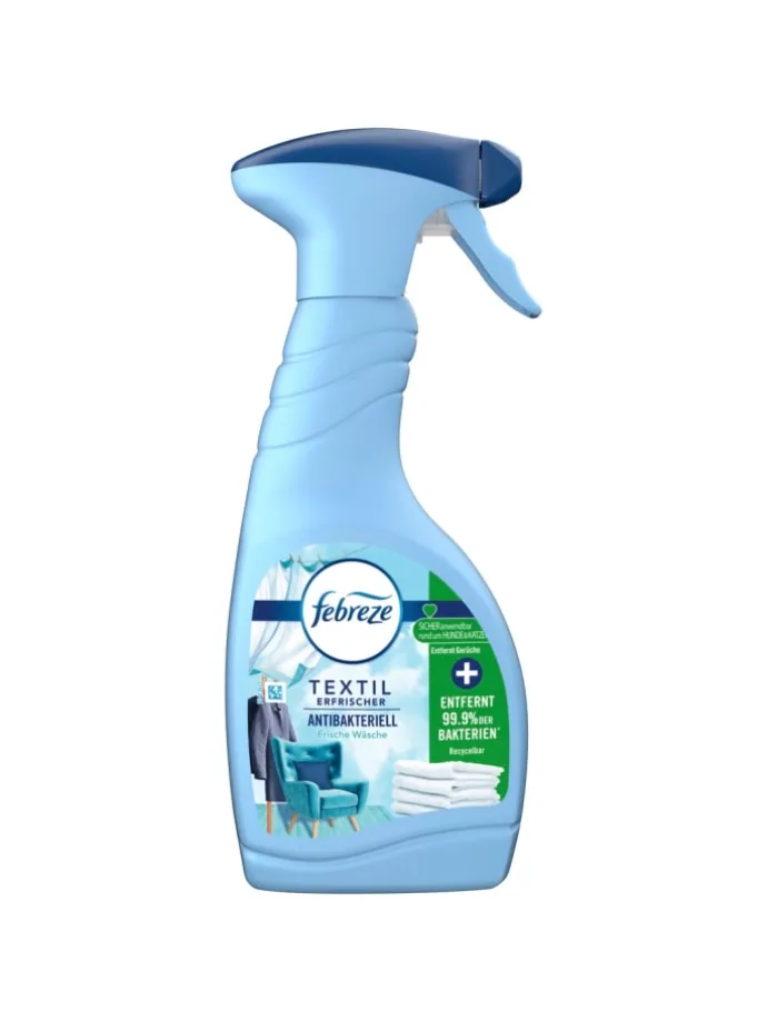 Lassen Sie sich von einem Gefühl völliger Ruhe einhüllen, wenn der sanfte Duft von frischer Wäsche den Raum erfüllt. Febreze Textilerfrischer-Spray Antibakteriell Frische Wäsche mit FrischeLuft-Technologie entfernt 99,9 % der Bakterien und hartnäckige Gerüche aus Textilien. Zurück bleibt nichts als ein leichter Frischeduft. Mit den Febreze Textilerfrischern lassen sich Textilien auffrischen, die nicht maschinenwaschbar sind, zum Beispiel Sofabezüge, Gardinen und Teppiche.
