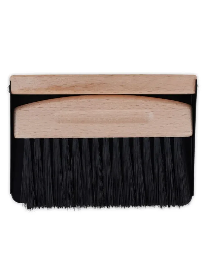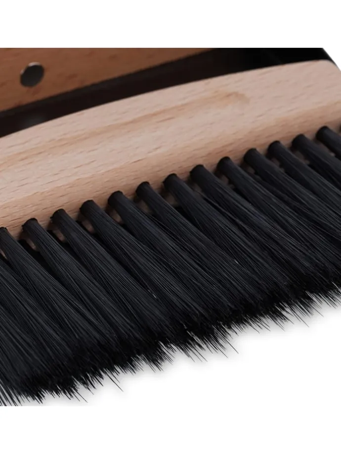 Handliche Kehrgarnitur aus Metall mit Holzgriffen