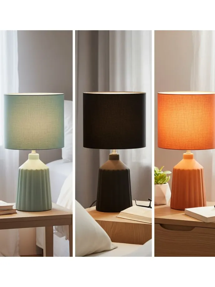 Elegante Nachttischlampe mit Stoffschirm