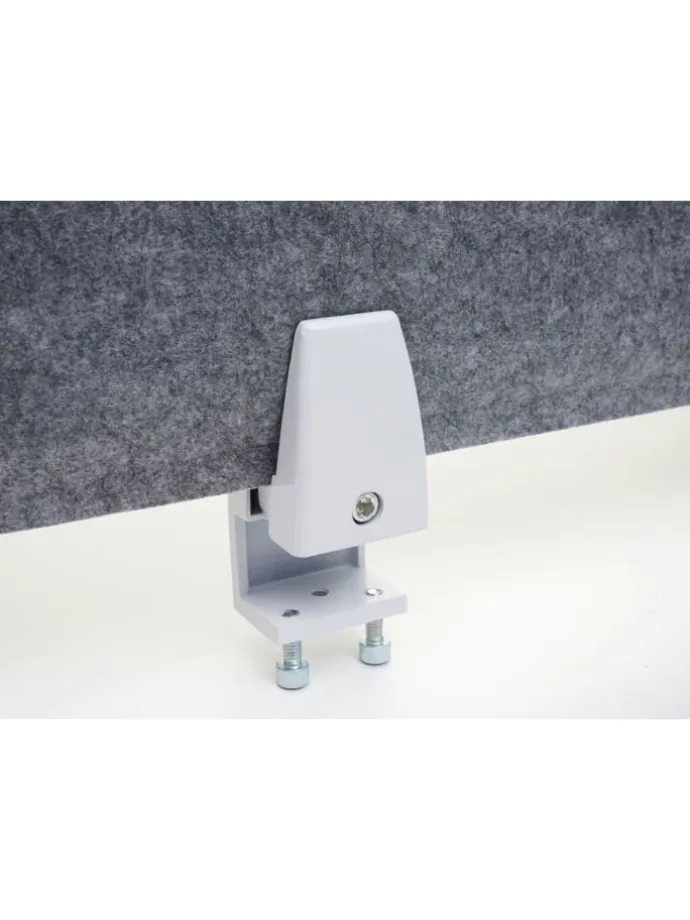Einfache und schnelle Montage: Es müssen nur die zwei mitgelieferte Tischklemmen mit Schrauben an Ihren Schreibtisch angebracht und die Trennwand in die vorhergesehene Öffnung der Klammern geschoben werden. Durch das individuelle Schraubsystem lässt sich der Schreibtischteiler an einem Tisch mit bis zu 2,5 cm Dicke befestigen.